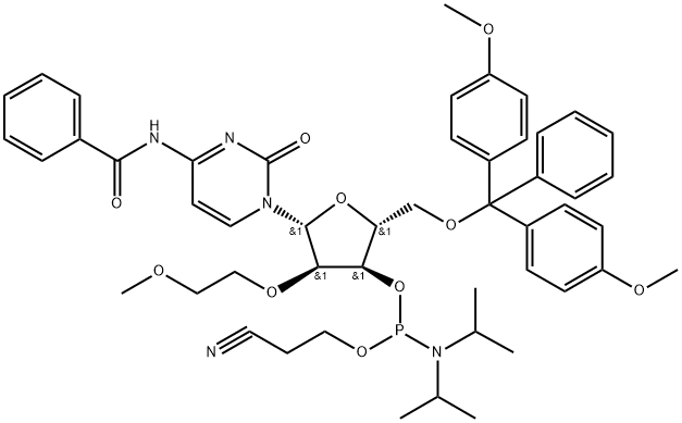 Uses:5''-O-DMT-N2-isobutyryl-2''-O-(2-methoxyethyl)-guanosine 3''-CE phosphoramidite (CAS# 251647-55-9) is a nucleotide, and a derivative of guanosine, and is used in the stereochemical sythesis of phosphorothioate oligonucleotides.