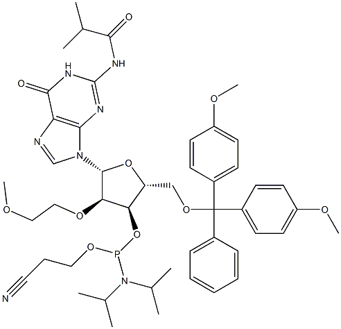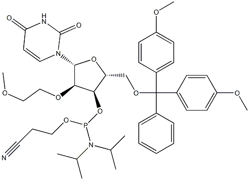 Synonyms: (2R,3R,4R,5R)-2-((BIS(4-METHOXYPHENYL)(PHENYL)METHOXY)METHYL)-5-(2,4-DIOXO-3,4-DIHYDROPYRIMIDIN-1(2H)-YL)-4-(2-METHOXYETHOXY)TETRAHYDROFURAN-3-YL 2-CYANOETHYL DIISOPROPYLPHOSPHORAMIDITE;5'-O-[Bis(4-methoxyphenyl)phenylmethyl]-2'-O-(2-methoxyethyl)uridine 3'-[2-cyanoethyl bis(1-methylethyl)phosphoramidite];5'-O-DMTr-2'-O-(2-methoxyethyl)-uridine-3'-CED-phosphoramidite;5'-O-DMT-2'-O-(2-methoxyethyl)uridine 3'-CE phosphoramidite;2'-O-MOE-U-CE Phosphoramidite;2'-O-MOE-U-3'-phosphoramidite;2'-O-MOE-U Phosphoramidite;Uridine, 5'-O-[bis(4-methoxyphenyl)phenylmethyl]-2'-O-(2-methoxyethyl)-, 3'-[2-cyanoethyl bis(1-methylethyl)phosphoramidite] (9CI)